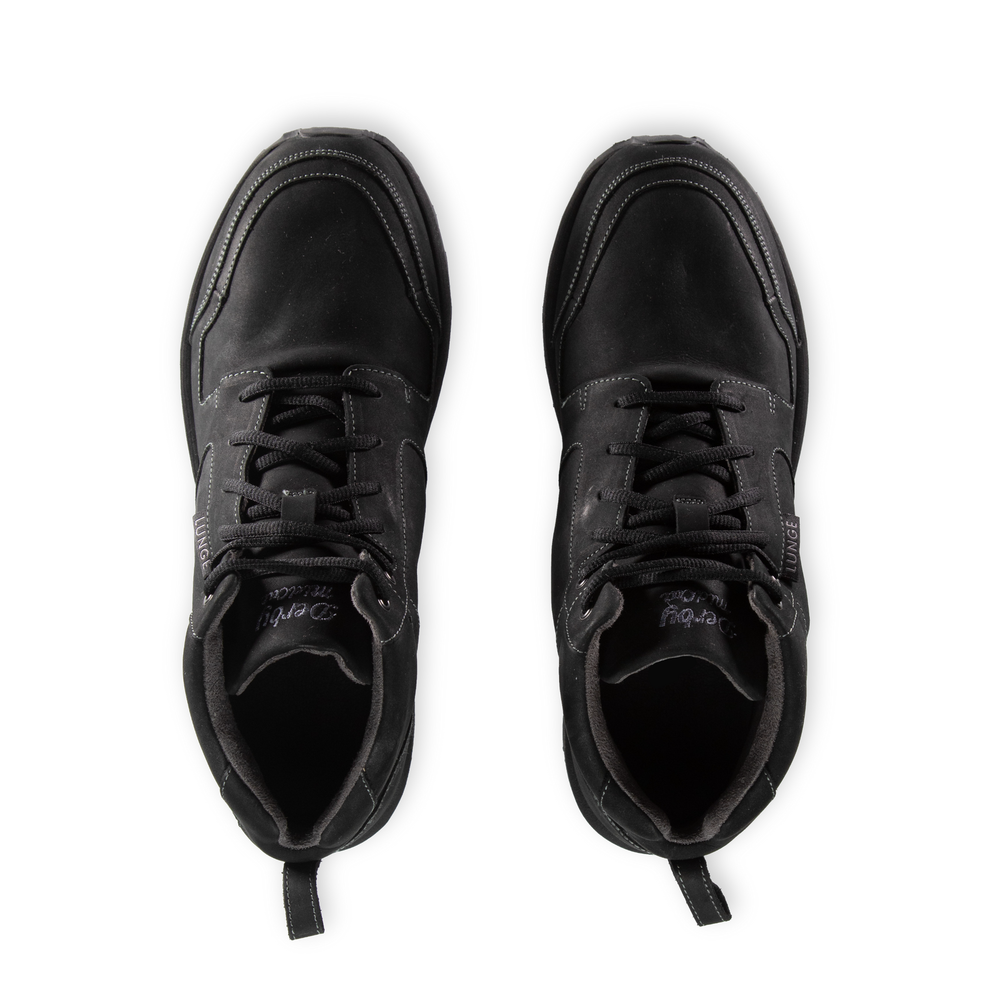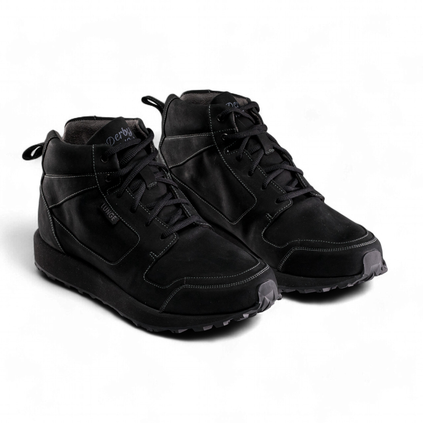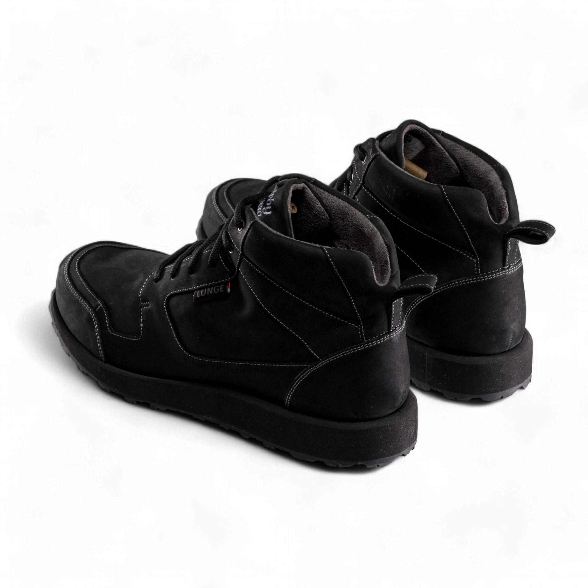 The first boot by LUNGE. Based on the popular DERBY WALK, known for its generous fit, we have developed a boot that offers plenty of space and comfort even in this MidCut style. While the wide collar foam gently hugs the ankle, the notch at the heel relieves pressure on the Achilles tendon even during the longest hikes. Meanwhile, the tongue protects against rain, and a membrane between the upper leather and lining material prevents less moisture from entering the shoe without compromising the comfort of the snug material.